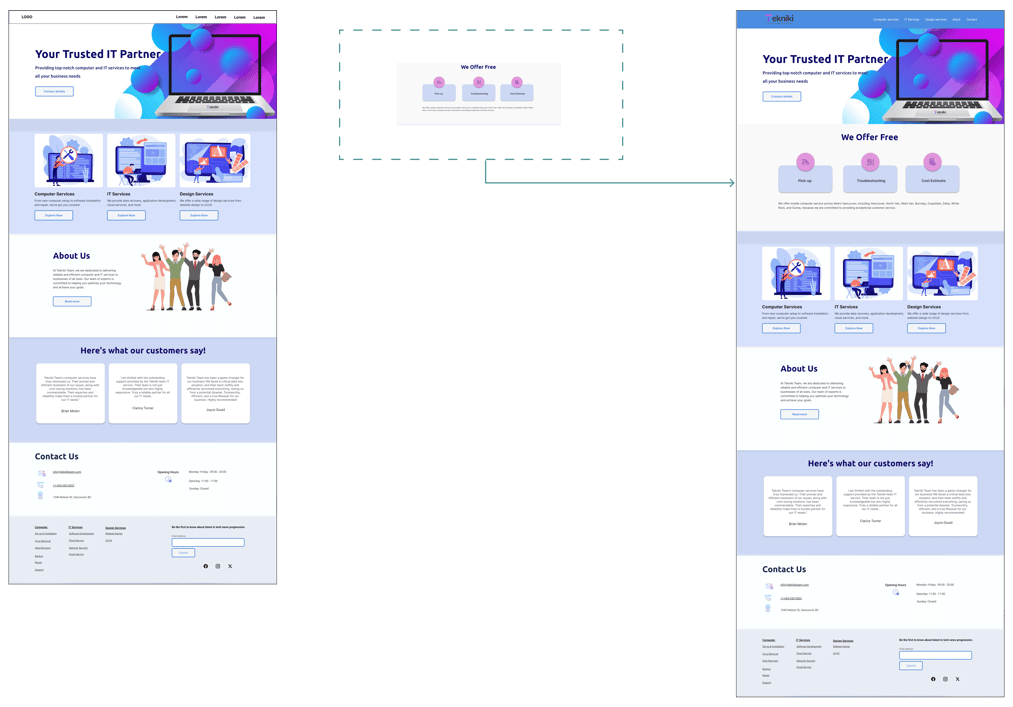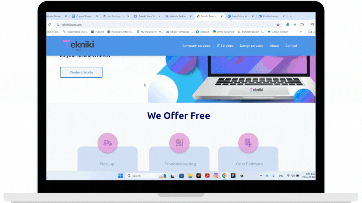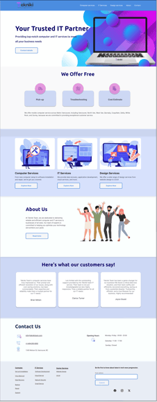 Tekniki Team is a Vancouver-based start-up specializing in a comprehensive array of computer and IT services. My role was to design a sleek, modern website for Tekniki Team that effectively showcases their diverse offerings while ensuring a user-friendly experience.